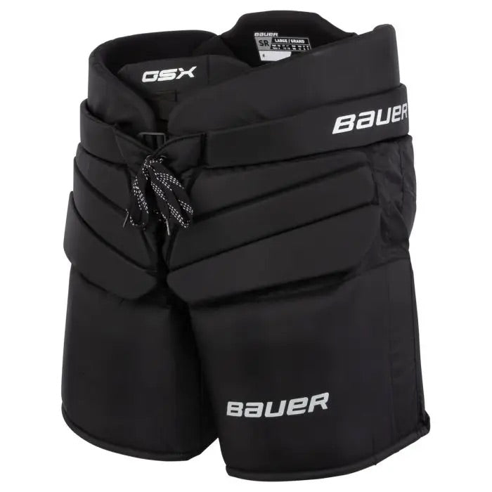 Bauer has introduced their next line of goaltender pants and brought you the Bauer GSX Senior Goalie Pants. The Bauer GSX Goalie Pants are designed to be a simple design with specific features geared toward mobility, and protection.