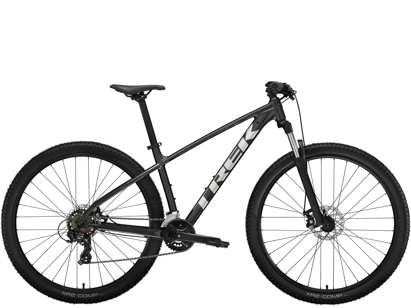 The Trek Marlin 4 - Blue is the perfect mountain bike that can easily transition from rail trails to singletrack, making it the ideal choice for riders seeking a durable commuter bike with knobby tires. With front suspension, Shimano 14-speed shifting, disc brakes, and mounting options for a rack and fenders, this bike appeals to both trail riders and campus commuters with its versatile functionality and design.